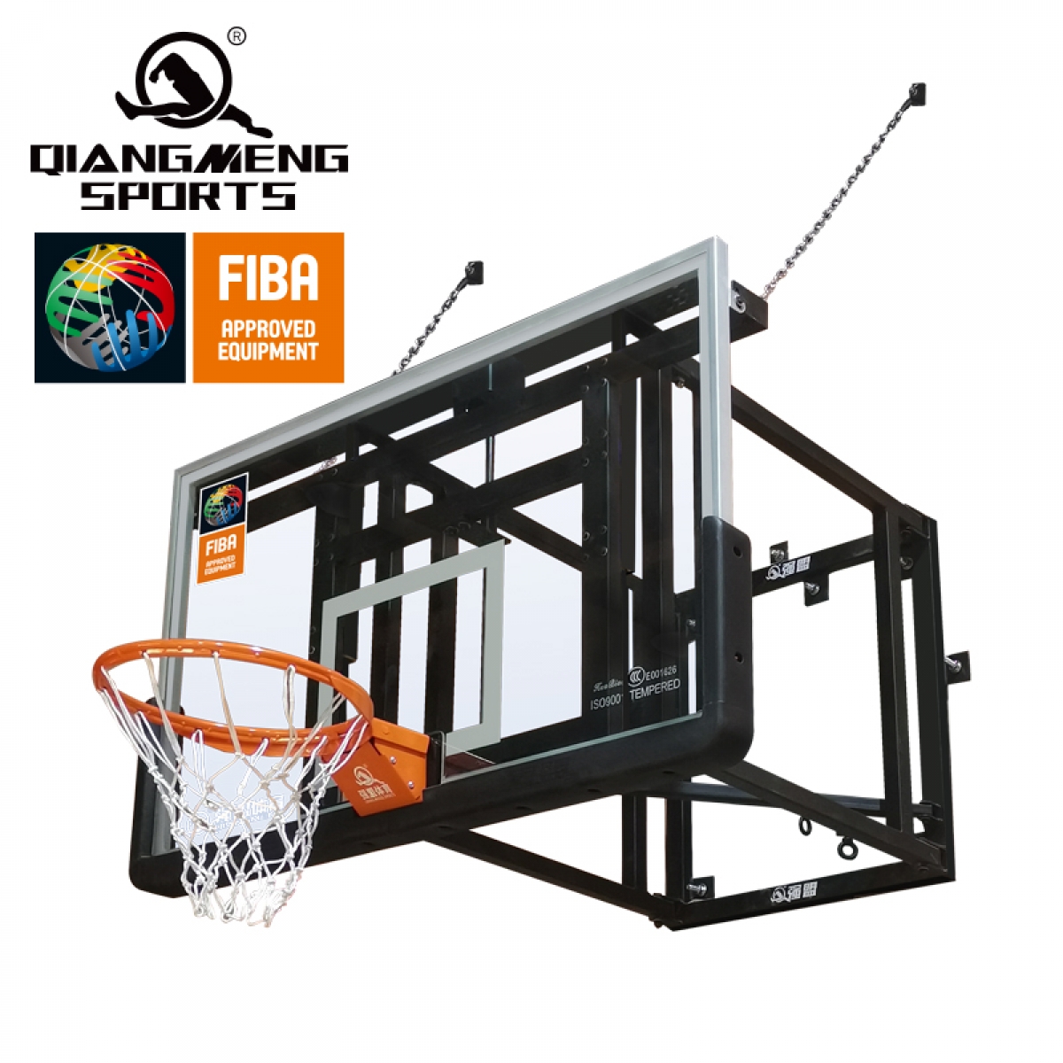 安全防護:1800×1050×12mm 鋼化玻璃籃板,加厚防爆設(shè)計并帶保護套